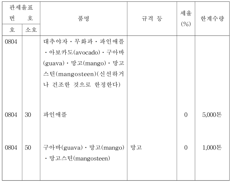 1. 할당관세 적용 관련 (관련 규정 : 관세법71조에 따른 할당관세의 적용에 관한 규정)